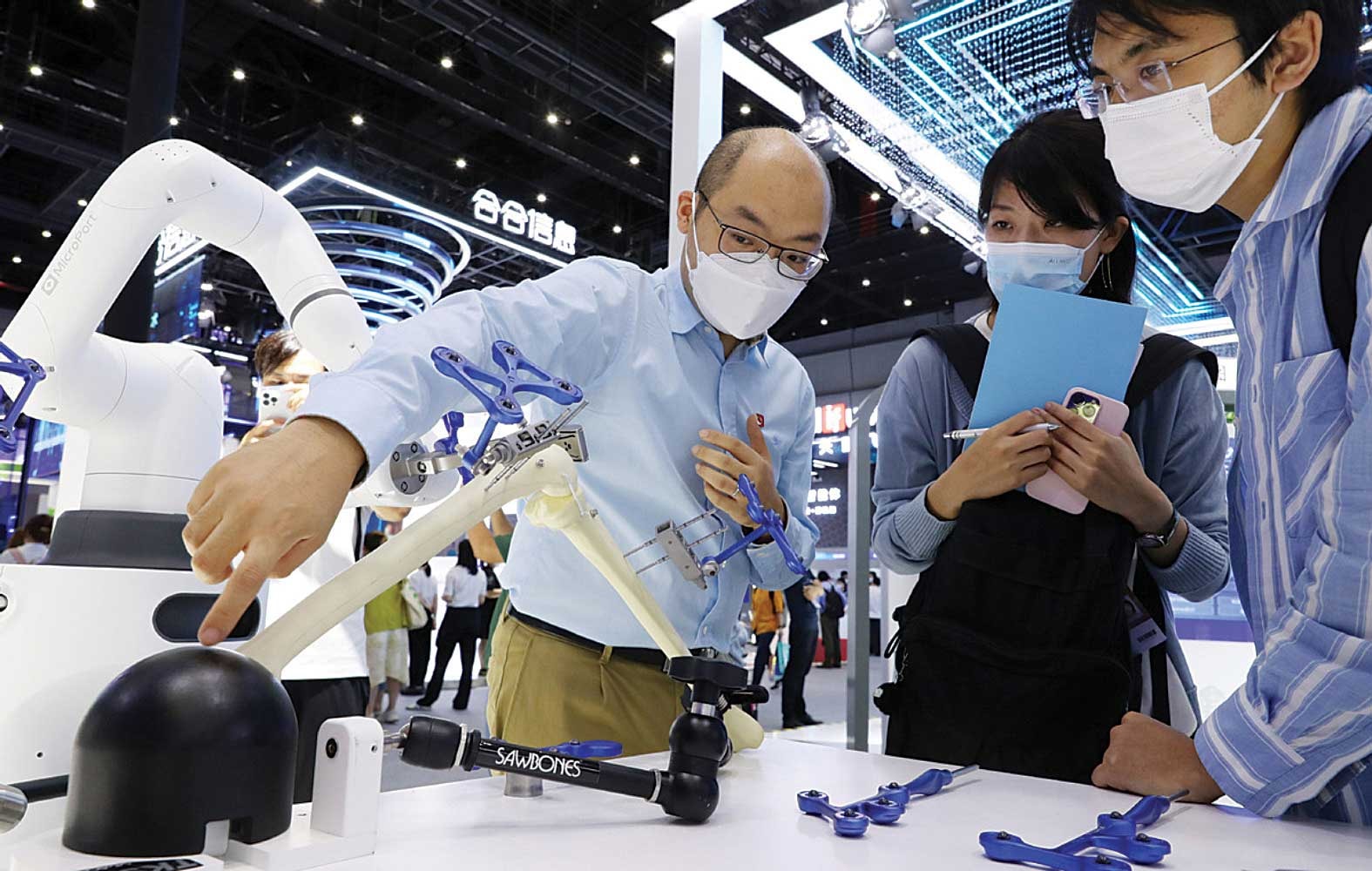Giới thiệu robot y học tại Hội nghị Trí tuệ nhân tạo thế giới ở Thượng Hải, Trung Quốc_Ảnh: THX/TTXVN
