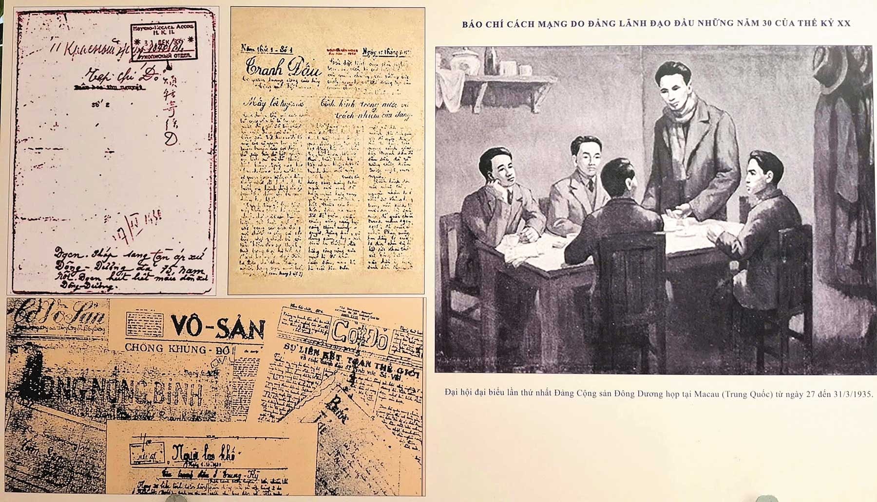 - Ngày 21-6-1925, Báo Thanh Niên - cơ quan ngôn luận của Việt Nam Thanh niên Cách mạng Đồng chí Hội, do Lãnh tụ Nguyễn Ái Quốc sáng lập - xuất bản số đầu tiên. - Năm 1926, Lãnh tụ Nguyễn Ái Quốc lập ra Báo Kông Nông; Báo Lính Kách mệnh (năm 1927). - Ngày 1-10-1929, Báo Búa liềm - cơ quan Trung ương của Đông Dương cộng sản Đảng ra số đầu tiên. - Ngày 5-8-1930, Tạp chí Đỏ, tiền thân của Tạp chí Cộng sản - tạp chí lý luận chính trị của Ban Chấp hành Trung ương Đảng Cộng sản Việt Nam - được thành lập do Nguyễn Ái Quốc sáng lập và trực tiếp phụ trách. - Ngày 15-8-1930, Báo Tranh đấu - cơ quan Trung ương của Đảng Cộng sản Việt Nam ra số đầu tiên. - Tháng 8-1941, xuất bản Báo Việt Nam độc lập. - Tháng 1-1942, xuất bản Báo Cứu quốc. - Tháng 10-1942, xuất bản Báo Cờ giải phóng. .... - Trong giai đoạn 1930 - 1945, ngoài một số tờ báo tiêu biểu nêu trên, còn nhiều tờ báo cách mạng như Báo Cờ Vô sản, Tạp chí Bôn-sê-vích, Báo Đỏ,... của các tổ chức cộng sản và các đoàn thể cứu quốc, các xứ ủy, tỉnh ủy, huyện ủy, chi bộ như: Lao động, Thợ thuyền, Nông dân, Nhà quê, Bạn nghèo, Dân cày,... thổi bùng lý tưởng giải phóng dân tộc, cổ vũ nhân dân vùng lên chống ách cai trị của thực dân phong kiến. |