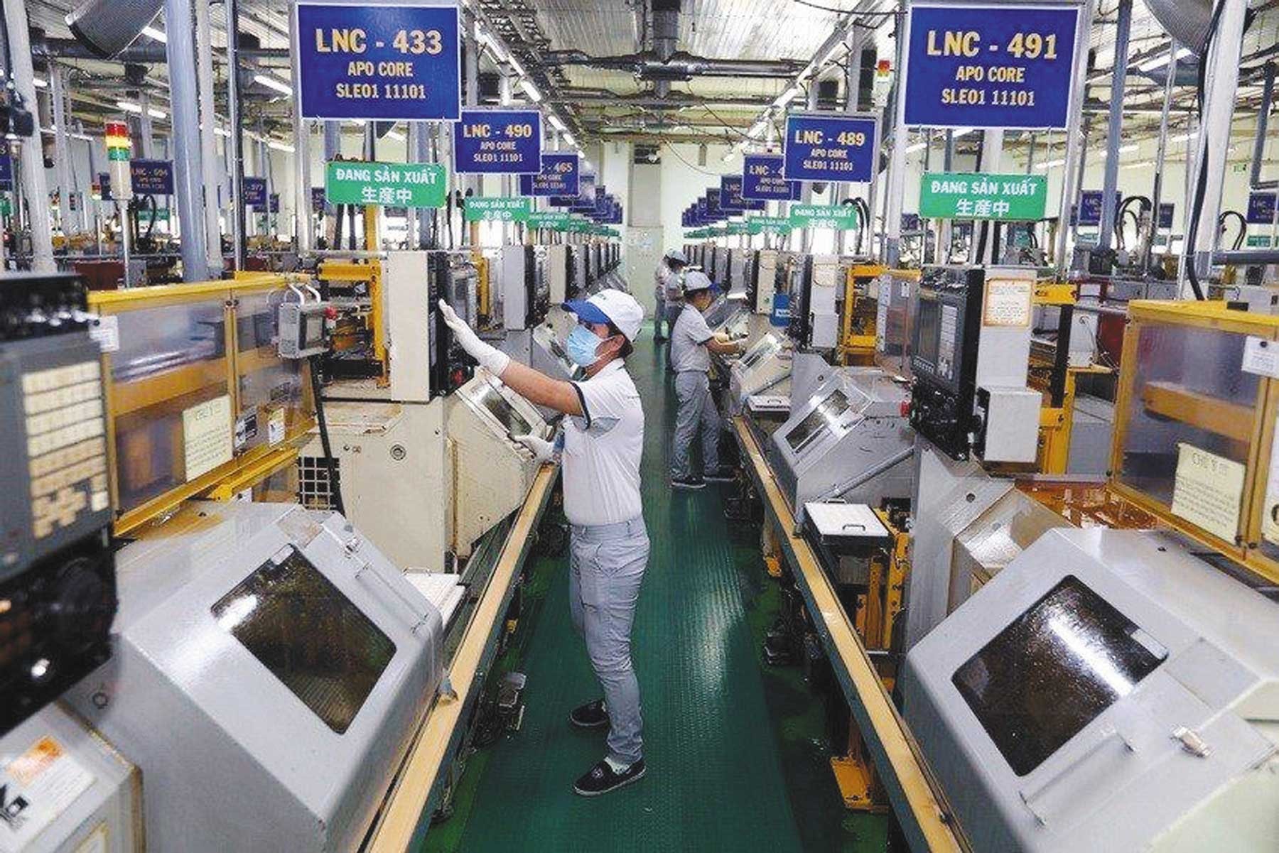 Công nhân điều khiển dây chuyền tại Công ty Nidec Tosok Việt Nam, Khu chế xuất Tân Thuận, Thành phố Hồ Chí Minh_Ảnh: TTXVN