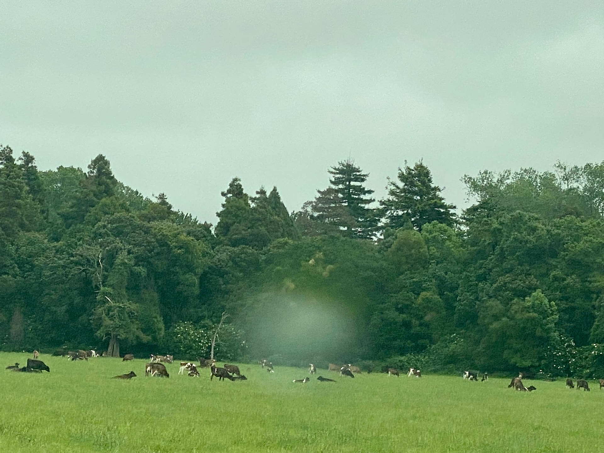 Những cánh đồng hoa vàng cỏ xanh mênh mông, rộng dài ấy đã già, bò không ăn nữa, người dân chuẩn bị thay thế lứa cỏ mới. Thi thoảng, nhấn nhá trong đồng cỏ là những dãy máy tưới nước, dinh dưỡng tự động; những hàng rào cây thẳng tắp, bằng chặn chặn ngăn cách các trang trại; những đàn bò, cừu nhẩn nha gặm cỏ, ườn mình nằm thảnh thơi hay vui đùa nghịch ngợm.
