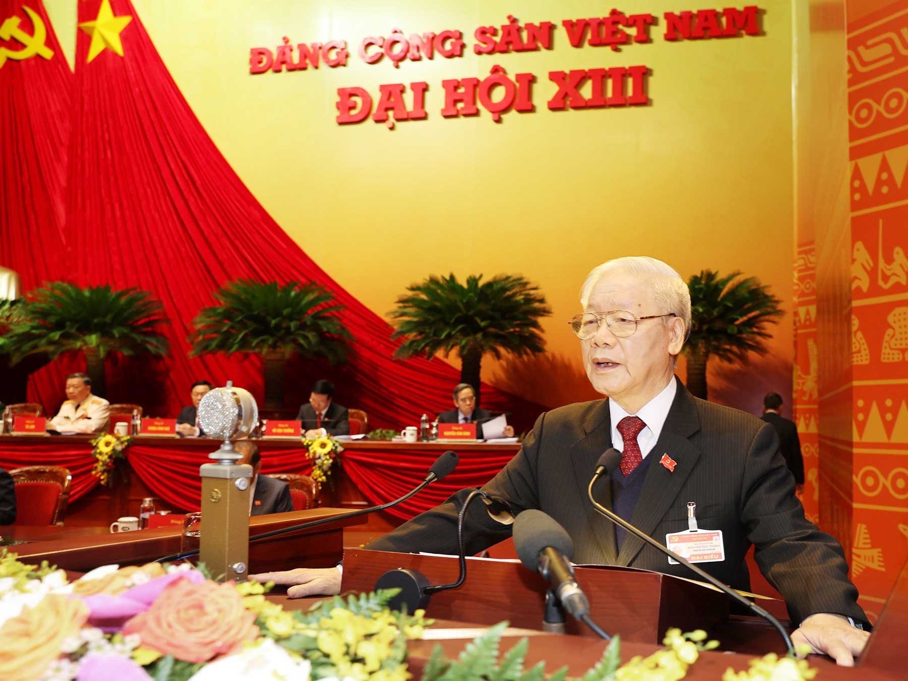 Đồng chí Nguyễn Phú Trọng - Tổng Bí thư Ban Chấp hành Trung ương Đảng, Chủ tịch nước Cộng hòa xã hội chủ nghĩa Việt Nam - phát biểu tại Đại hội XIII của Đảng, ngày 26-1-2021_Ảnh: TTXVN