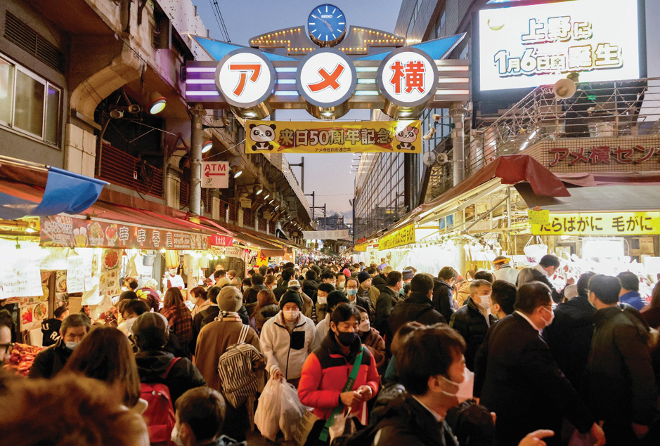 Dòng người tấp nập tại khu mua sắm và ẩm thực đường phố Ameyoko ở Thủ đô Tokyo, Nhật Bản, ngày 29-12-2022_Ảnh: Reuters