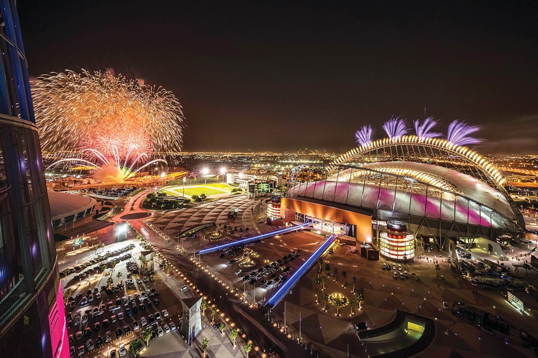Lễ hội âm nhạc và ánh sáng tại sân vận động Al Bayt (Qatar) - trong buổi khai mạc World Cup 2022_Ảnh: TL