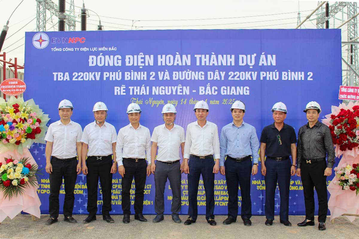 Vừa qua, Tổng công ty Điện lực miền Bắc (EVNNPC), phối hợp cùng các đơn vị liên quan đã hoàn thành và đóng điện thành công công trình trọng điểm Trạm biến áp (TBA) 220kV Phú Bình 2 và đường dây rẽ Thái Nguyên - Bắc Giang. Đây là công trình mang ý nghĩa đặc biệt, không chỉ chào mừng Đại hội Đảng bộ Tập đoàn Điện lực Quốc gia Việt Nam lần thứ IV, mà còn khẳng định vai trò chủ lực của EVNNPC trong việc triển khai các công trình điện 220kV có quy mô và tính chất quan trọng đối với sự phát triển hệ thống điện miền Bắc.