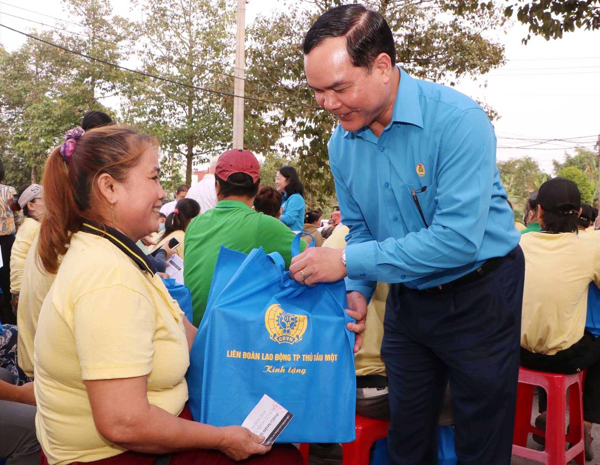 Chủ tịch Tổng Liên đoàn Lao động Việt Nam Nguyễn Đình Khang trao quà Tết cho công nhân ở Bình Dương_Ảnh: danviet.vn