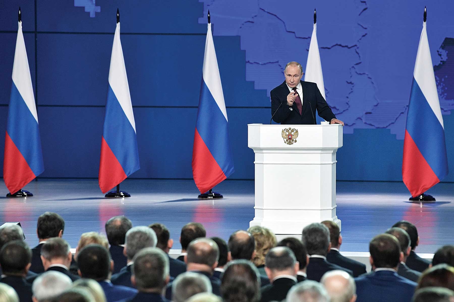 Tổng thống Nga V. Putin đọc Thông điệp Liên bang năm 2020, trong đó đề xuất sửa đổi Hiến pháp Liên bang Nga năm 1993 để bảo vệ chủ quyền quốc gia của Nga_Ảnh: Reuters