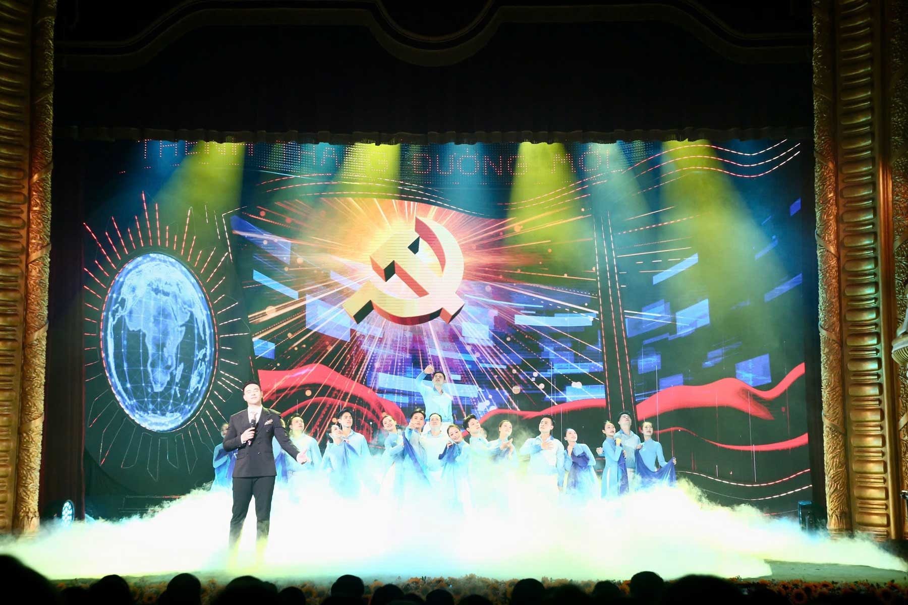 Chương trình được chia làm 3 chương: Cờ Đảng rạng soi đường đấu tranh; Chung một cơ đồ Việt Nam và Tiến vào kỷ nguyên mới, với sự tham gia của các ca sĩ, nghệ sĩ nổi tiếng như: Phạm Phương Thảo, Hoàng Hiệp, Đông Hùng, Vũ Thắng Lợi, Hoàng Hồng Ngọc, Vũ Thùy Linh, Viết Danh, cùng sự góp mặt của ban nhạc rock trẻ Việt Dũng - Minh Việt - Hồng Phi - Quang Huy - Quách Hải và quân nhạc Đoàn nghi lễ quân đội... Chương trình gồm các tiết mục, ca khúc đặc sắc như: tiết mục biểu diễn tranh cát “Thời cơ mở ra những kỷ nguyên hào hùng”; các ca khúc: Theo Đảng trọn đời; Dấu chân phía trước; Ca ngợi Đảng Cộng sản; Trường ca sông Lô; Chiến thắng Điện Biên; Tiến về Hà Nội; Tự nguyện; Bước chân trên dải Trường Sơn; Huế, Sài Gòn, Hà Nội; Bình Trị Thiên khói lửa; Đảng là cuộc sống của tôi; Thênh thang đường mới...