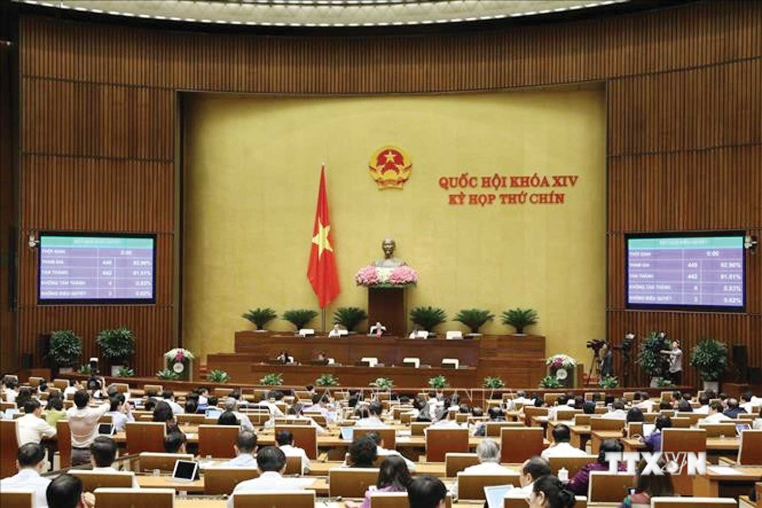 Quốc hội biểu quyết thông qua Nghị quyết về thí điểm một số cơ chế, chính sách tài chính - ngân sách đặc thù đối với thành phố Hà Nội_Ảnh: TTXVN
