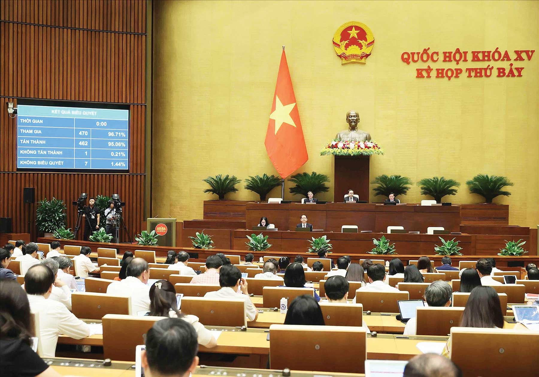 Ngày 28-6-2024, với 462/470 đại biểu Quốc hội có mặt tán thành (chiếm 95,06% tổng số đại biểu), Quốc hội đã thông qua Luật Thủ đô (sửa đổi)_Ảnh: TTXVN