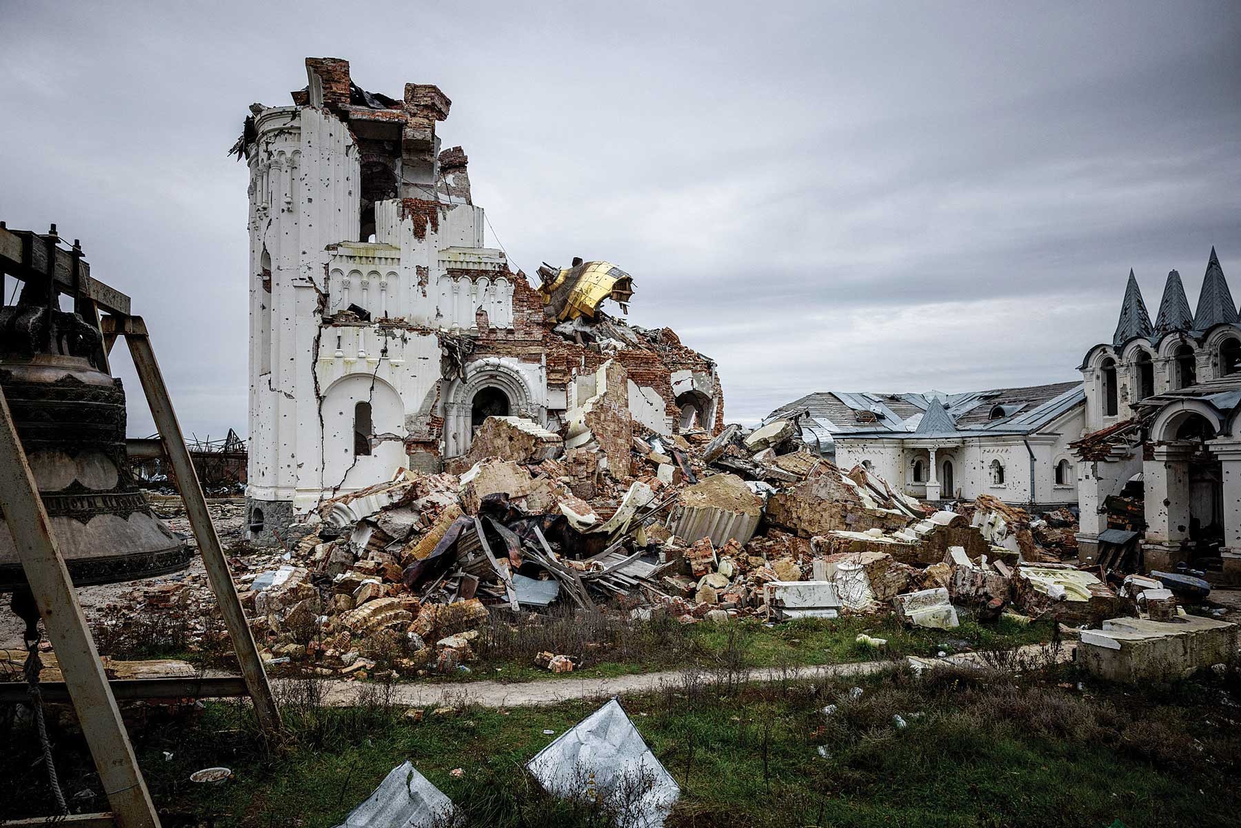 Một tu viện ở Sviatohirsk (Ukraina) sau các đợt không kích và pháo kích của Nga_Ảnh: AFP