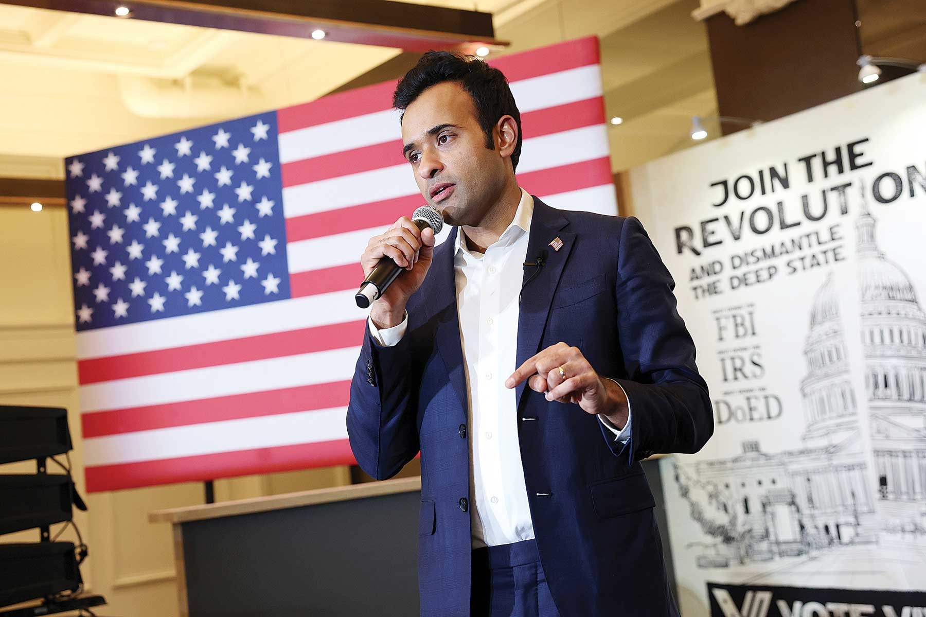 Tỷ phú Vivek Ramaswamy tuyên bố rời khỏi cuộc đua giành lá phiếu đề cử ứng cử viên Tổng thống Mỹ của Đảng Cộng hòa, ngày 15-1-2024_Ảnh: Getty Images