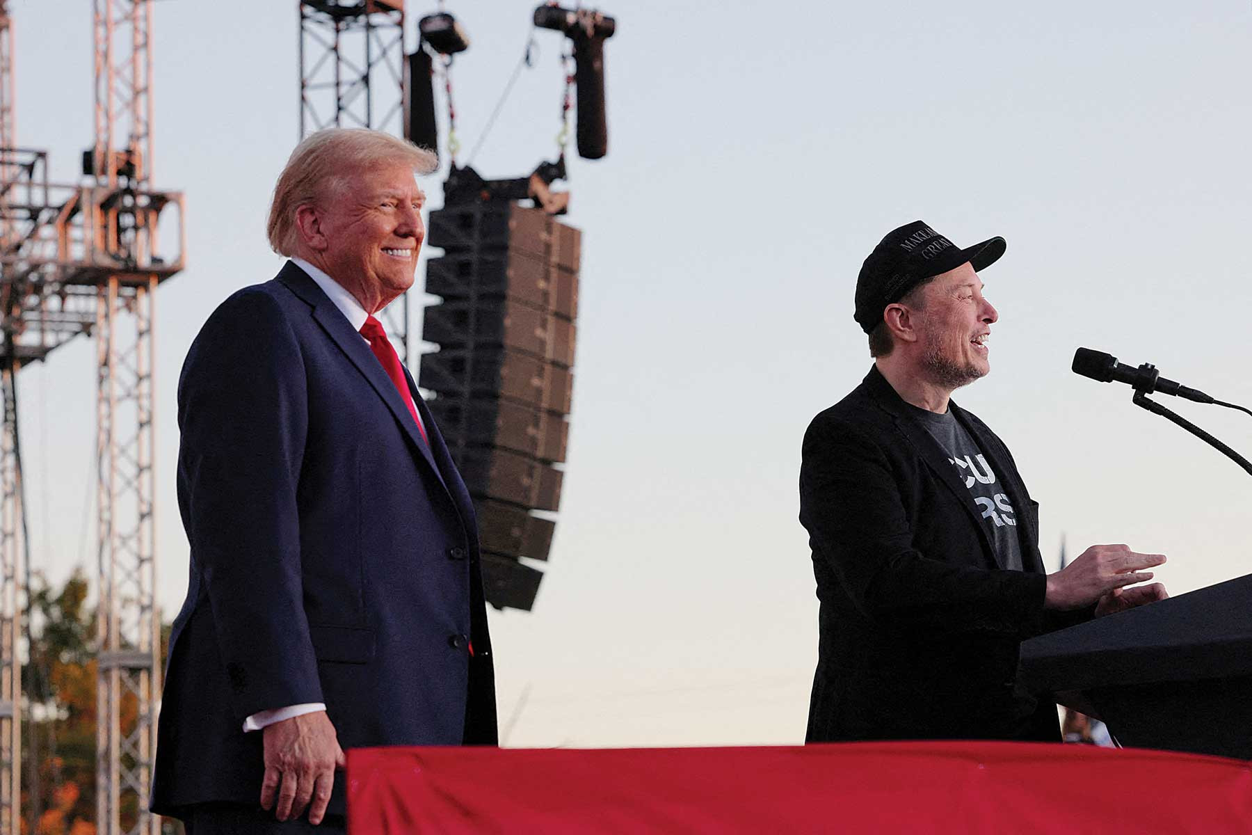 Tỷ phú Elon Musk (phải) xuất hiện cùng ông Donald Trump tại một sự kiện ở Pennsylvania, Mỹ, ngày 5-10-2024_ Ảnh: Reuters