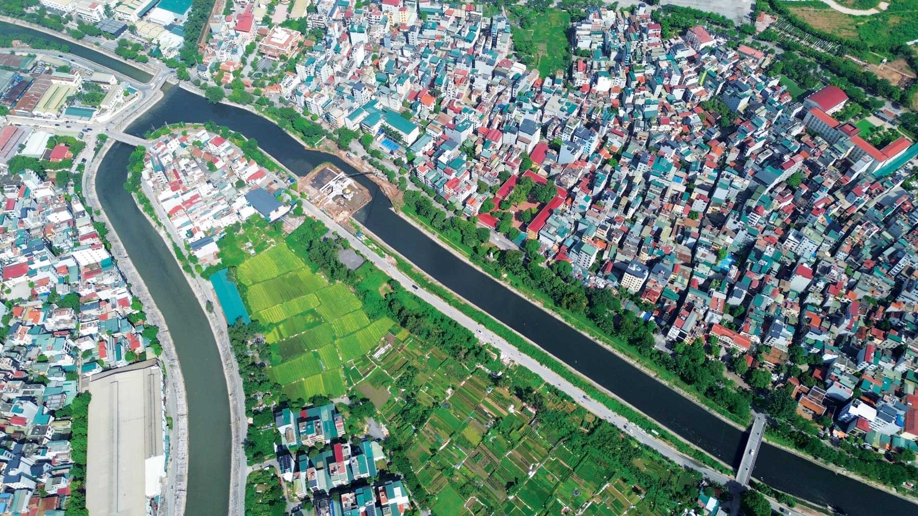 Đập dâng sông Tô Lịch, Hà Nội nhìn từ trên cao_Ảnh: TTXVN