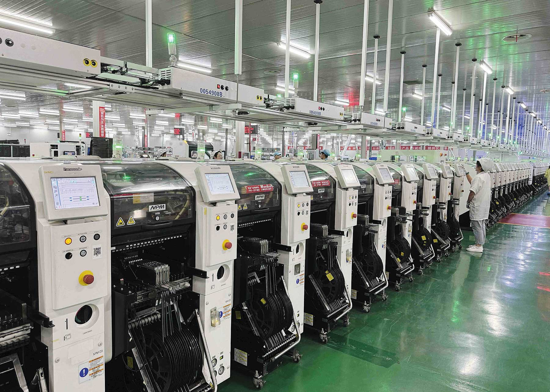 Dây chuyền sản xuất đèn LED của một doanh nghiệp tư nhân ở tỉnh Sơn Tây, Trung Quốc_Ảnh: TTXVN