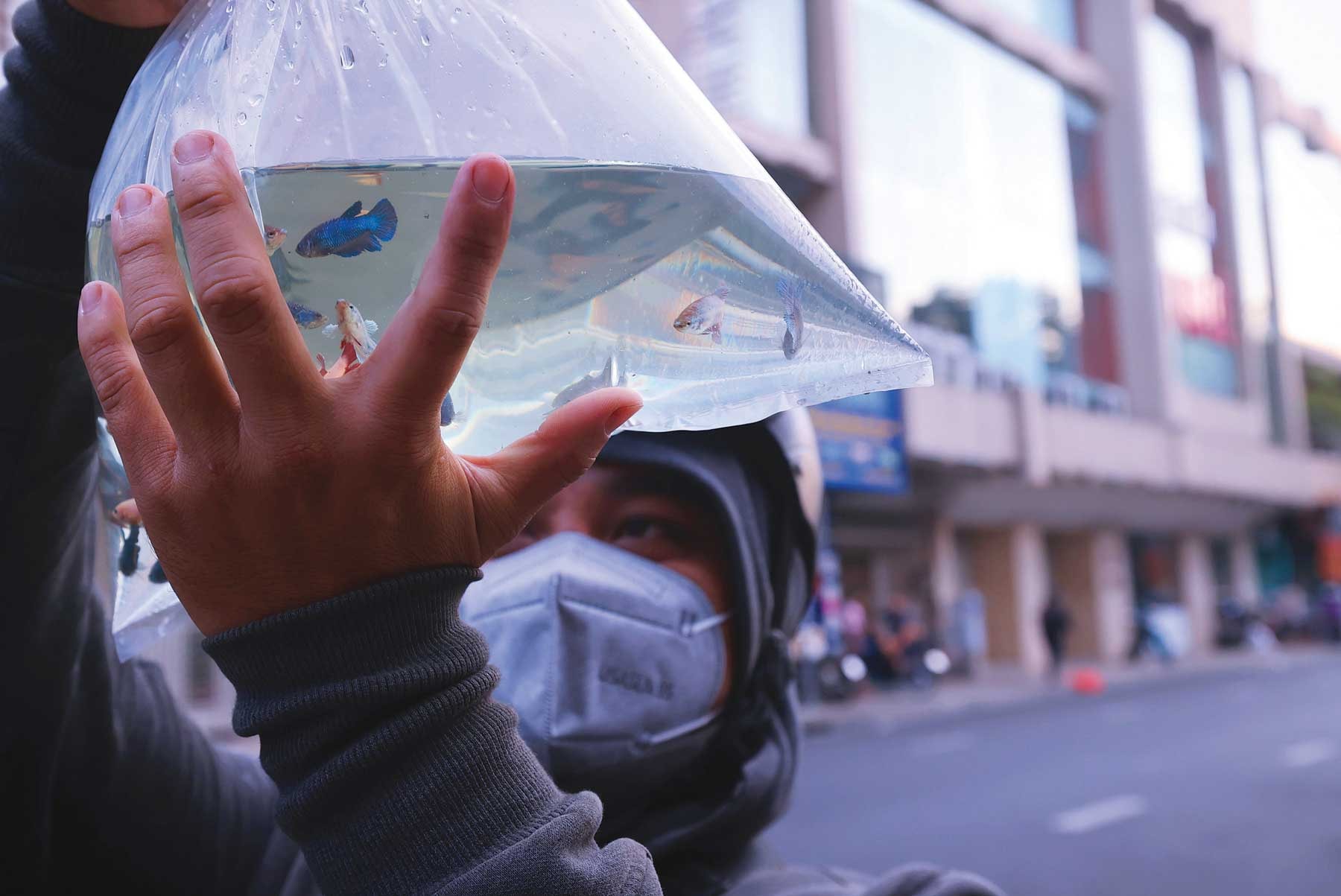 Những túi cá đủ các loại như bảy màu, tiger, cá đĩa, ba đuôi,... có giá khoảng 150.000 - 200.000 đồng/bọc (50 - 60 con), thậm chí có cả cá tiền triệu như cá la hán được bơm sẵn ô-xy, bày bán la liệt trên mặt đường. Khách hàng thích loại nào sẽ cầm đèn pin soi vào bọc cá để ngắm nghía, trả giá trước khi quyết định xuống tiền.