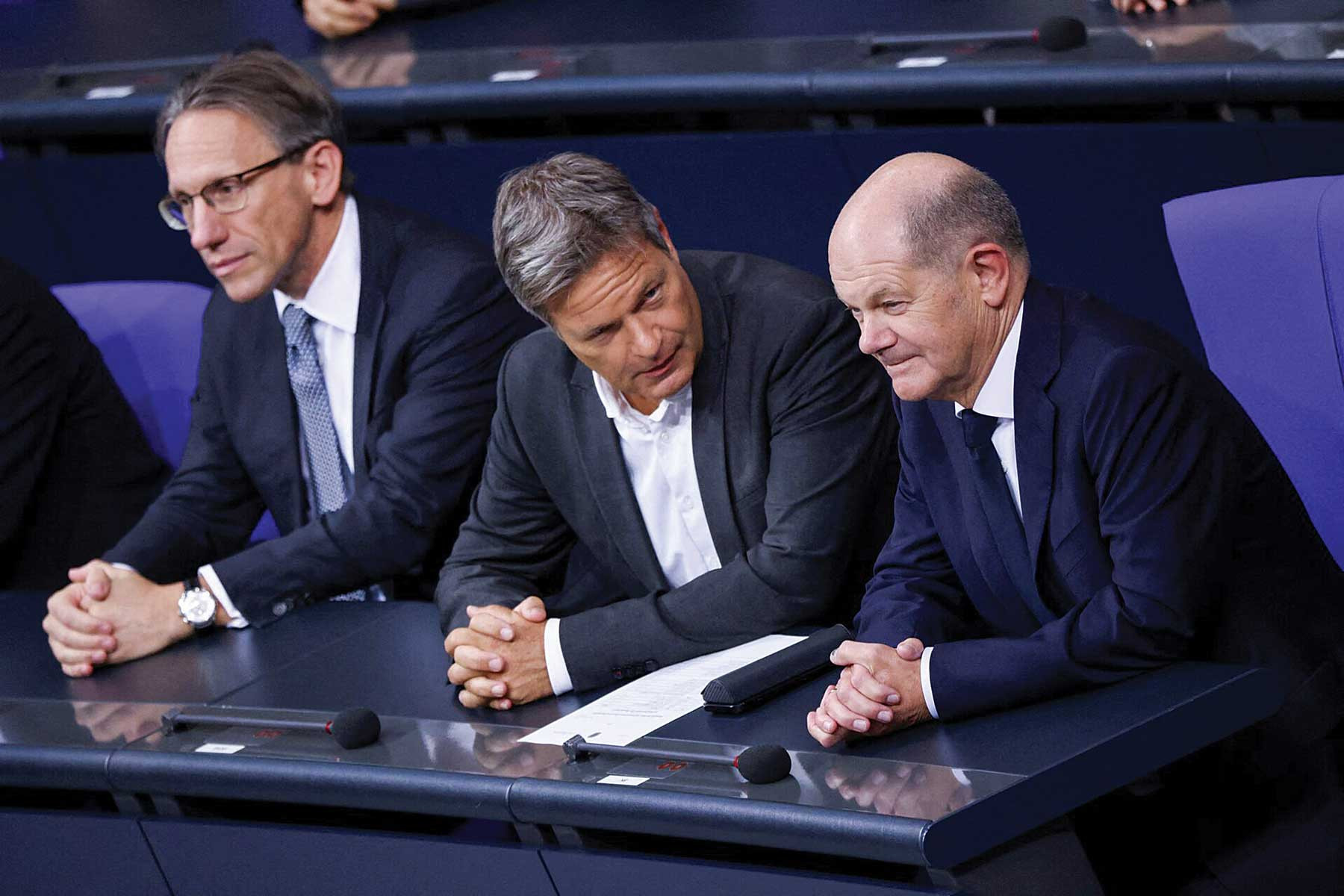 Tân Bộ trưởng Tài chính Đức Joerg Kukies (trái) cùng Bộ trưởng Kinh tế Robert Habeck và Thủ tướng Olaf Scholz tại phiên họp Quốc hội ở Berlin, ngày 7-11-2024_Ảnh: Reuters/TTXVN