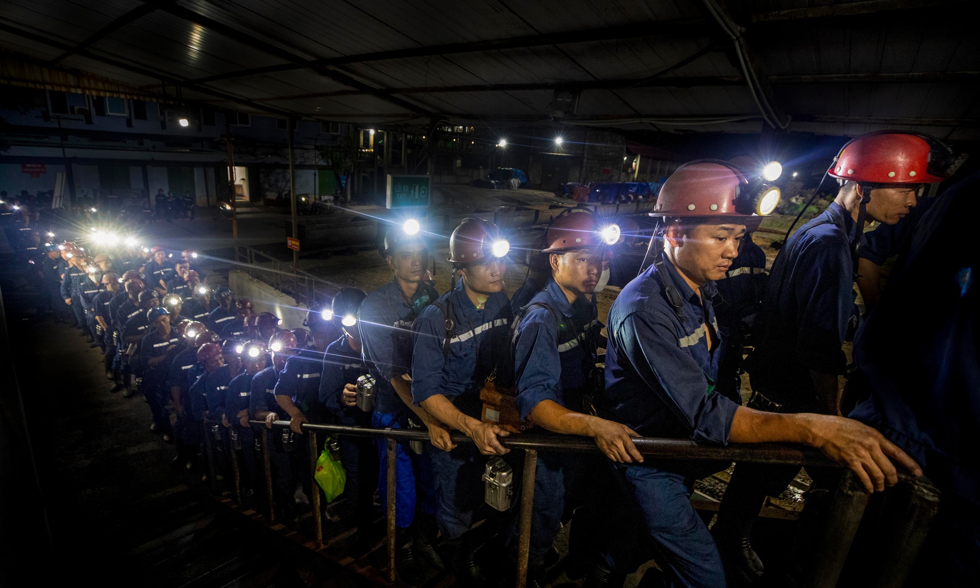 Thợ lò xếp hàng để vào “thùng cũi” xuống lòng đất_Ảnh: Phạm Học