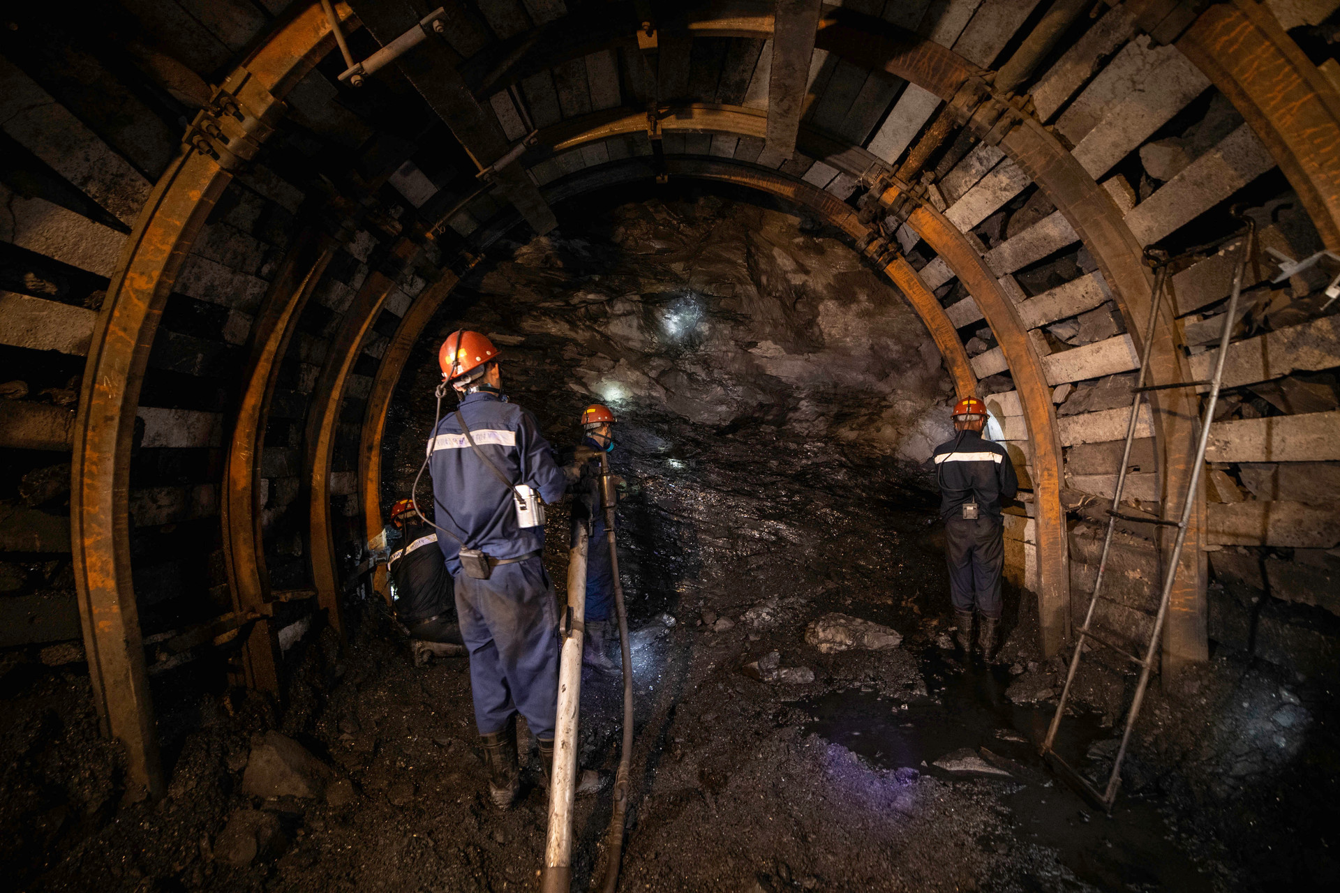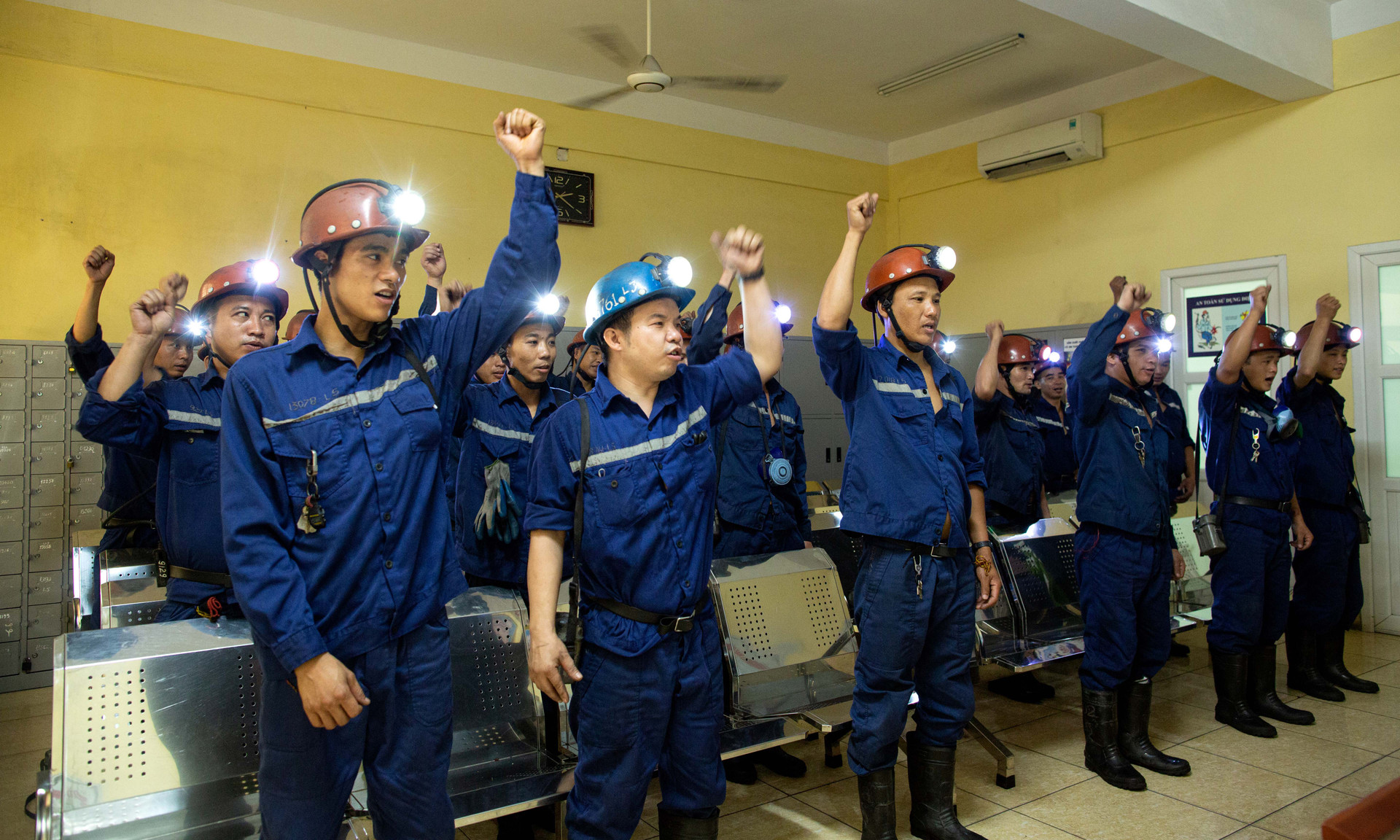 Thợ lò hô khẩu hiệu an toàn trước khi vào ca_Ảnh: Phạm Học