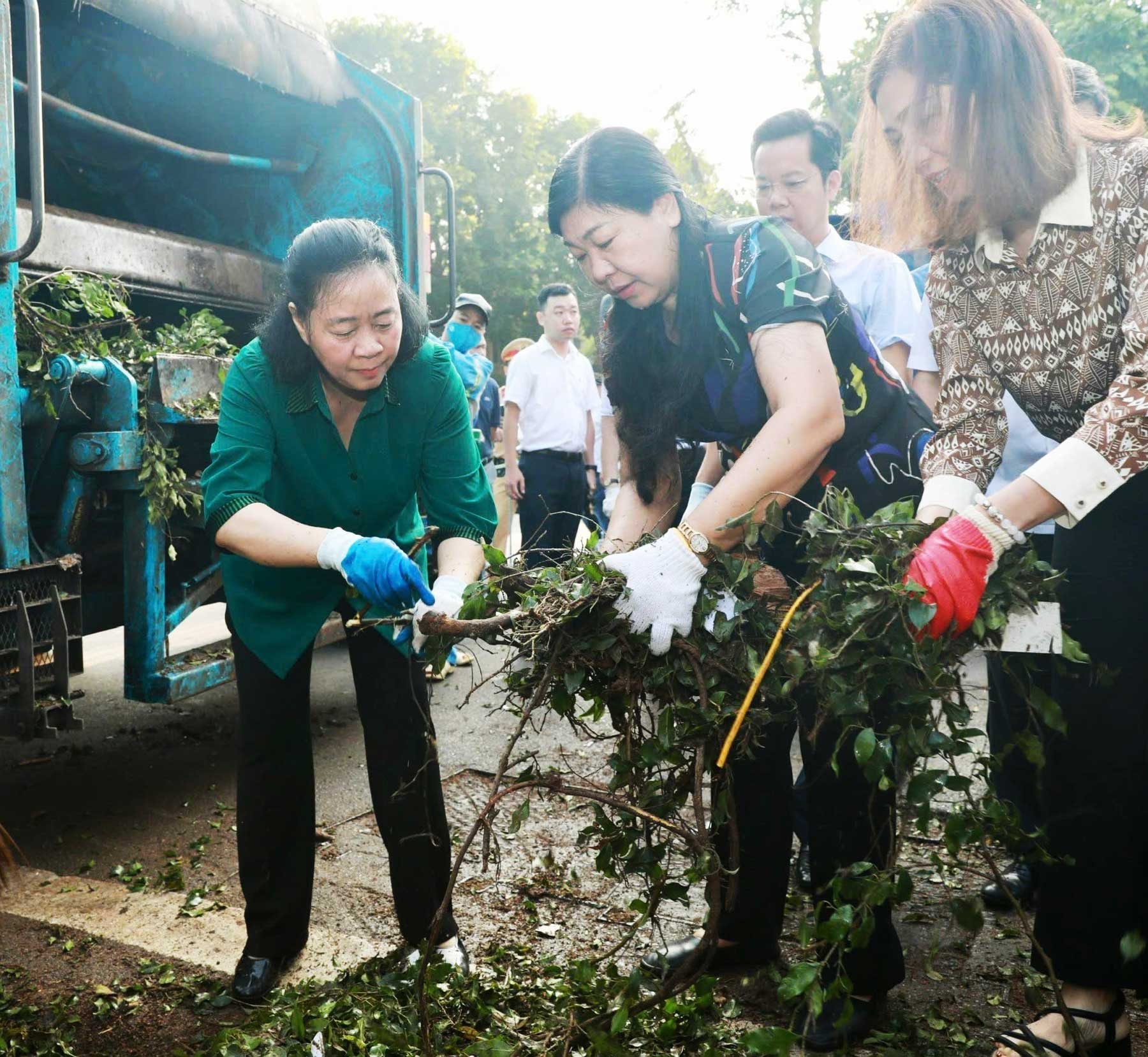 Trong 2 ngày 14 và 15-9, chính quyền và nhân dân các quận, huyện của thành phố Hà Nội thực hiện dọn dẹp vệ sinh môi trường, xử lý cây đổ, bảo đảm an toàn giao thông, cảnh quan môi trường đô thị.