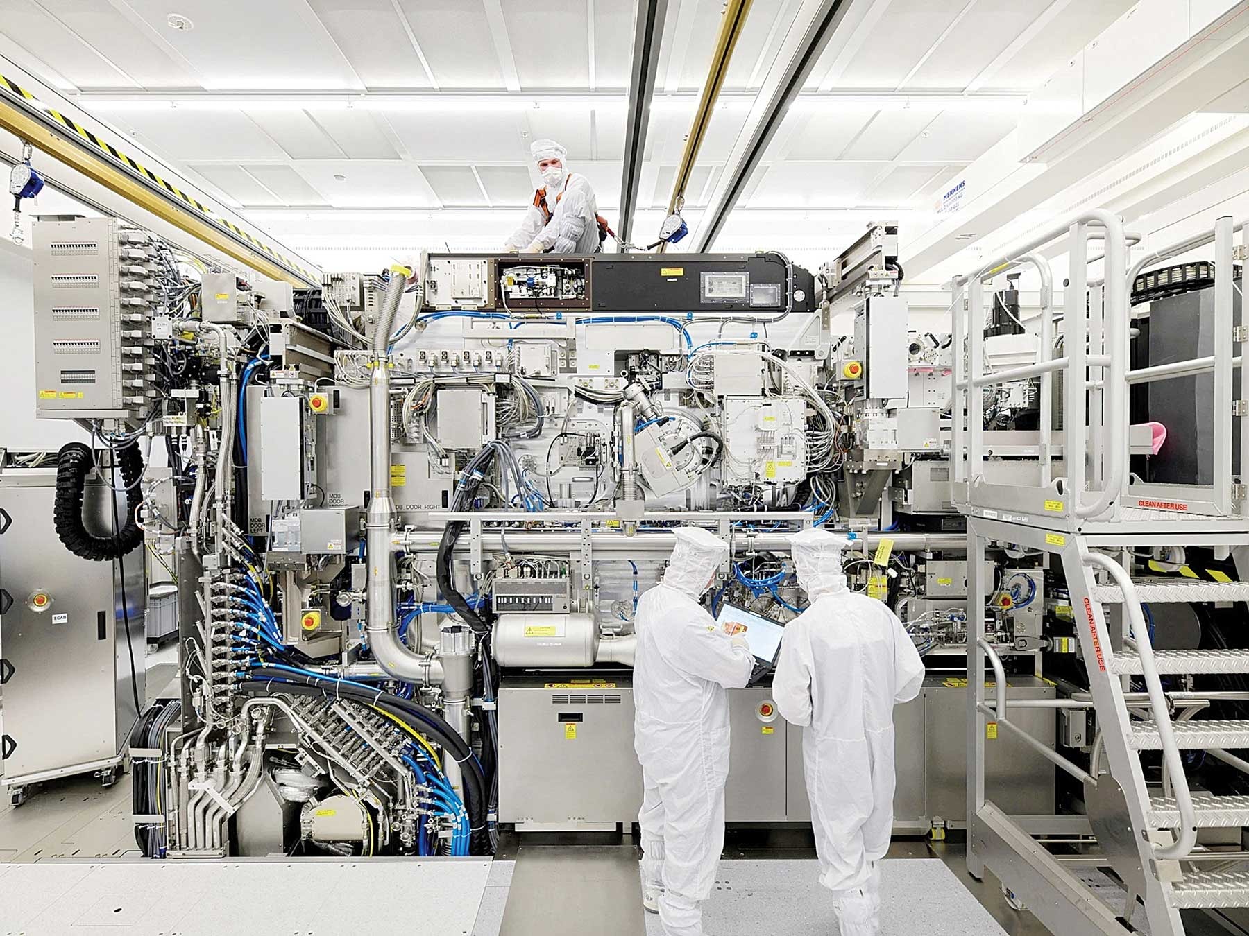Máy quang khắc chip bằng siêu tia cực tím của ASML được lắp ráp tại Veldhoven, Hà Lan, tháng 4-2019_Ảnh: Reuters