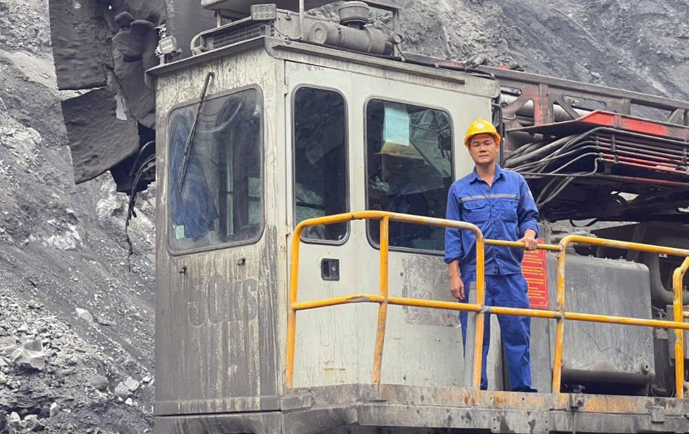 Công việc của anh gắn liền với chiếc máy khoan Sandvik D50 KS - một thiết bị lớn, hiện đại nhưng tiềm ẩn nhiều nguy cơ mất an toàn do đặc thù địa hình đồi núi, moong sâu và cường độ vận hành cao.