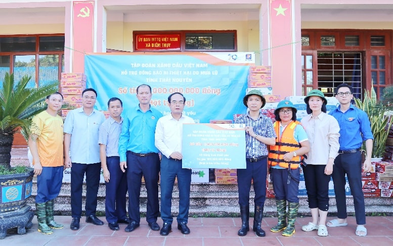 Với tinh thần hành động khẩn trương, hỗ trợ sớm nhất hàng nghìn hộ dân đang bị cô lập, chìm trong nước lũ, ngày 8-10-2025, tại xã Điềm Thụy, tỉnh Thái Nguyên, đoàn công tác Petrolimex do Phó Tổng Giám đốc Nguyễn Sỹ Cường làm trưởng đoàn cùng đại diện lãnh đạo Công đoàn Xăng dầu Việt Nam, các ban nghiệp vụ Tập đoàn và Đoàn thanh niên đã đến thăm hỏi, động viên và trao 1 tỷ đồng hỗ trợ cùng nhu yếu phẩm trị giá 100 triệu đồng đến người dân trên địa bàn tỉnh Thái Nguyên.