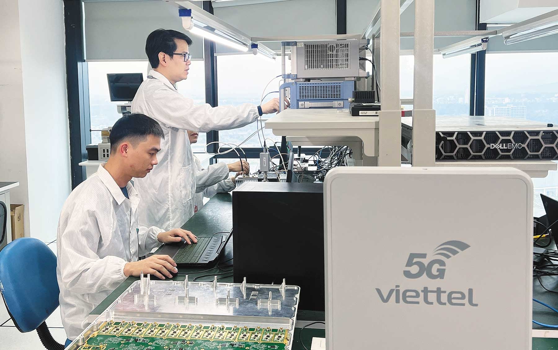 Các kỹ sư của Tổng Công ty Công nghiệp Công nghệ cao Viettel nghiên cứu, sản xuất, thử nghiệm các thiết bị 5G_Ảnh: Viettel High Tech