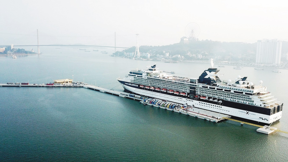 Tàu Celebrity Millennium đưa hơn 2.000 hành khách và gần 1.000 thủy thủ đoàn thuộc nhiều quốc tịch đến tham quan Vịnh Hạ Long và các điểm du lịch ở tỉnh Quảng Ninh_Ảnh: TTXVN