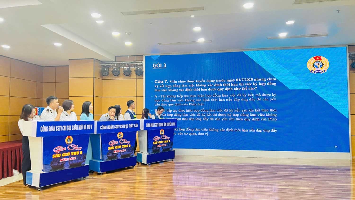 Đơn cử như “Sau giờ thứ 8” do Công đoàn Viên chức tỉnh Quảng Ninh tổ chức. Tham dự có 3 đội chơi, gồm Chi cục Chăn nuôi và thú y, Trung tâm Khuyến nông, Chi cục Thủy sản. Các đội thi trải qua 4 phần:Lời chào người lao động; Kiến thức pháp luật; Nhịp sống người lao động; Nhịp điệu người lao động với chủ đề về chính sách pháp luật, như Luật Lao động, Luật Công đoàn, Luật Bảo hiểm xã hội, Quy chế dân chủ cơ sở...