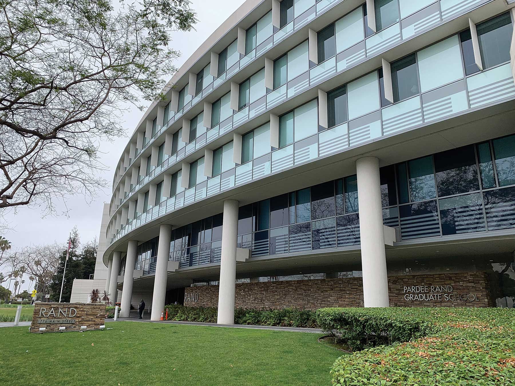 Trụ sở của RAND là tòa nhà 5 tầng cao với tổng diện tích 32.000m2 và 3 tầng hầm đủ chỗ đậu cho 825 xe ô tô. Hình dạng elip tòa nhà có chức năng đưa ánh sáng vào bên trong và thông gió tự nhiên cho toàn bộ không gian của công trình. Kiến trúc của tòa nhà này được cấp chứng chỉ LEED Gold dành cho các tòa nhà tiết kiệm năng lượng và thân thiện nhất với môi trường. Tầng trệt của tòa nhà có Trường Cao đẳng RAND, thư viện và các phòng họp sử dụng công nghệ hiện đại nhất.
