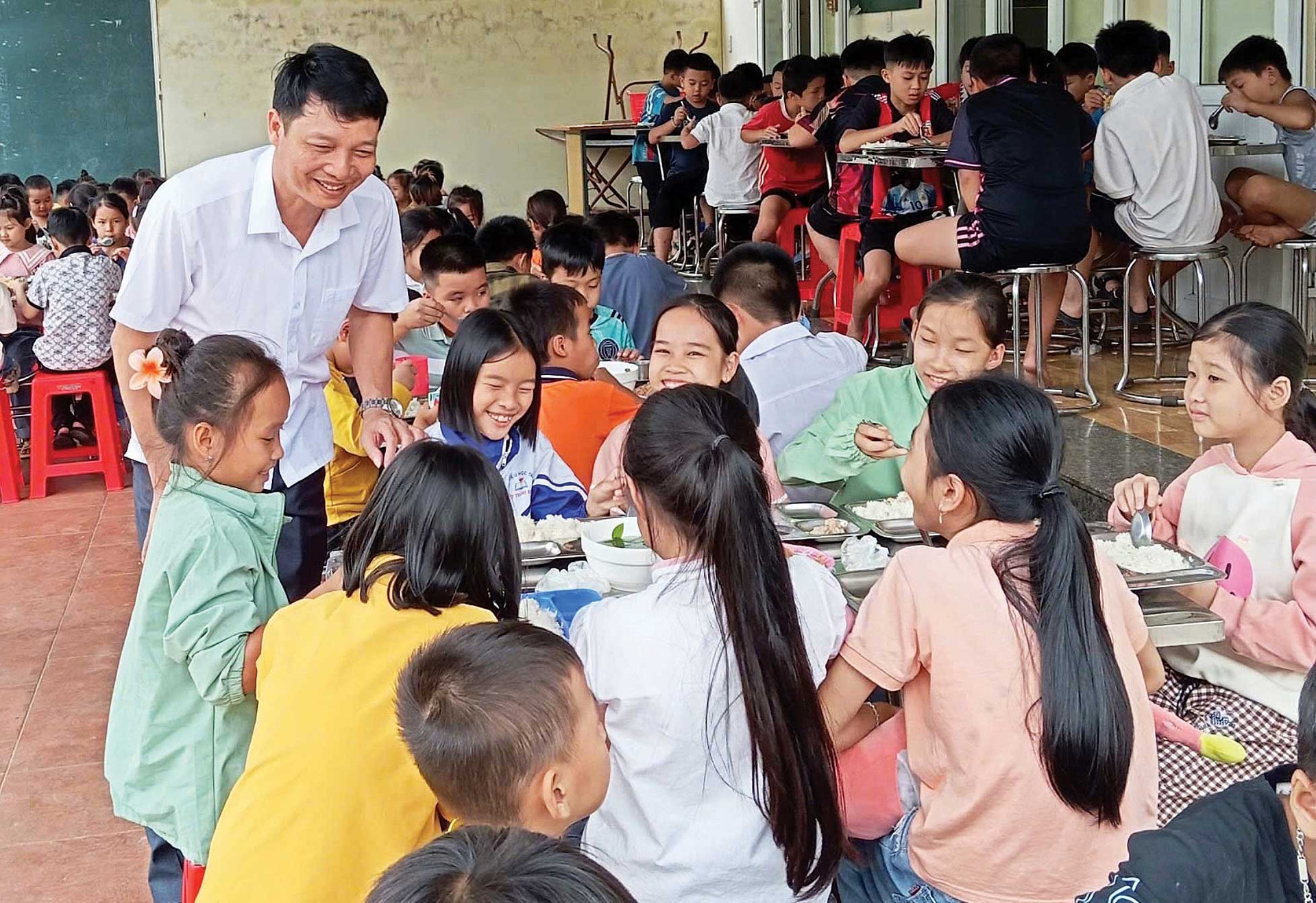 Riêng có điều chúng tôi quan tâm tiếp theo là hiệu quả của bữa cơm bán trú. Thầy Viên ngước nhìn về phía rừng cây, vui nói: “trước đây, trời đổ mưa hoặc trời nắng nóng là nhiều học sinh bỏ học buổi chiều. Từ năm học 2021 - 2022 đến nay, dù nắng, dù mưa học sinh vẫn siêng năng ngày 2 buổi đến trường, không còn cảnh bỏ học. Bữa cơm bán trú còn giúp các em có những kỹ năng cơ bản về giao tiếp, ứng xử trong cách ăn, cách nói. Hiệu quả vui nhất là chất lượng học tập được nâng lên rõ rệt, đồng đều từ điểm trường chính đến 3 điểm trường lẻ”.