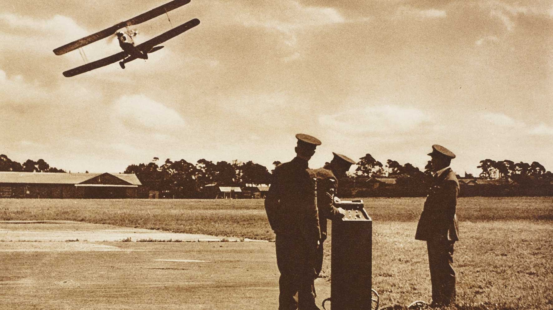 Khi Chiến tranh thế giới thứ nhất bùng nổ, chiếc UAV đầu tiên (thực chất là một loại ngư lôi trên không dùng để chống lại máy bay ném bom Zeppelin và tàu ngầm U-boat) có tên gọi Aerial Target mới chính thức xuất hiện.