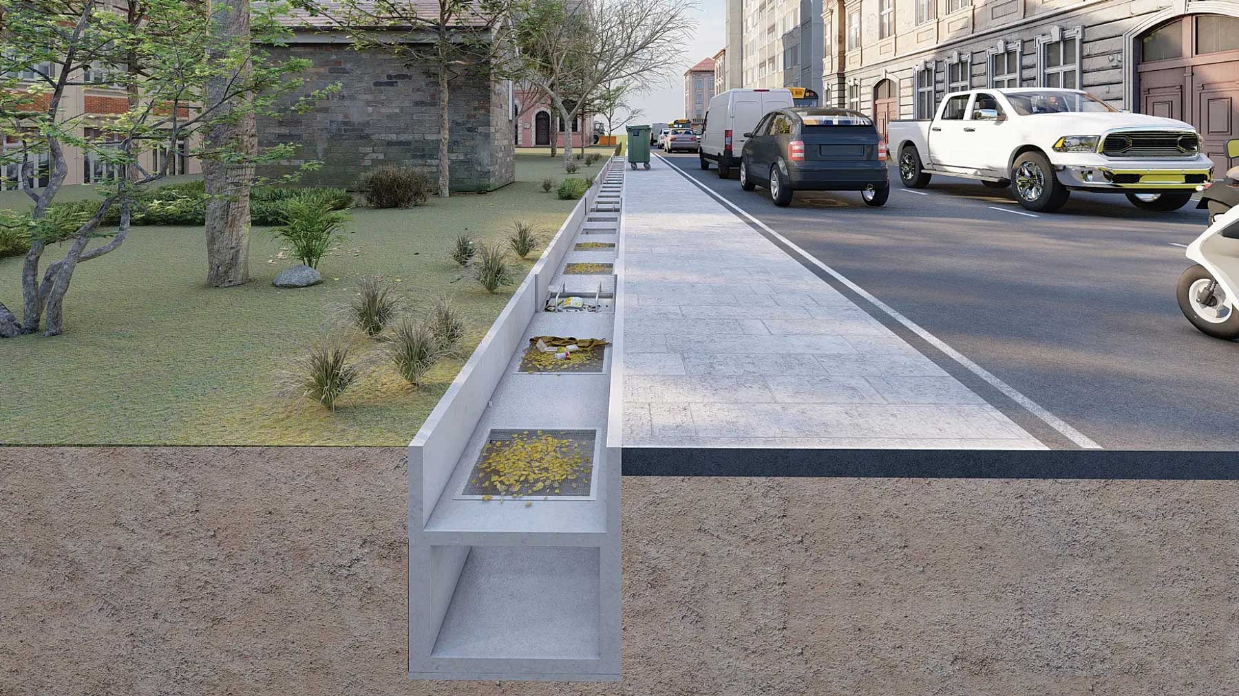 Với lượng mưa trung bình hàng năm khoảng 900mm và khoảng 200km2 bề mặt không thấm nước từ mái nhà và vỉa hè, hệ thống cơ sở hạ tầng xám truyền thống đã khiến thành phố phải đối mặt với tình trạng tràn nước thải, ngập lụt và ô nhiễm nước.