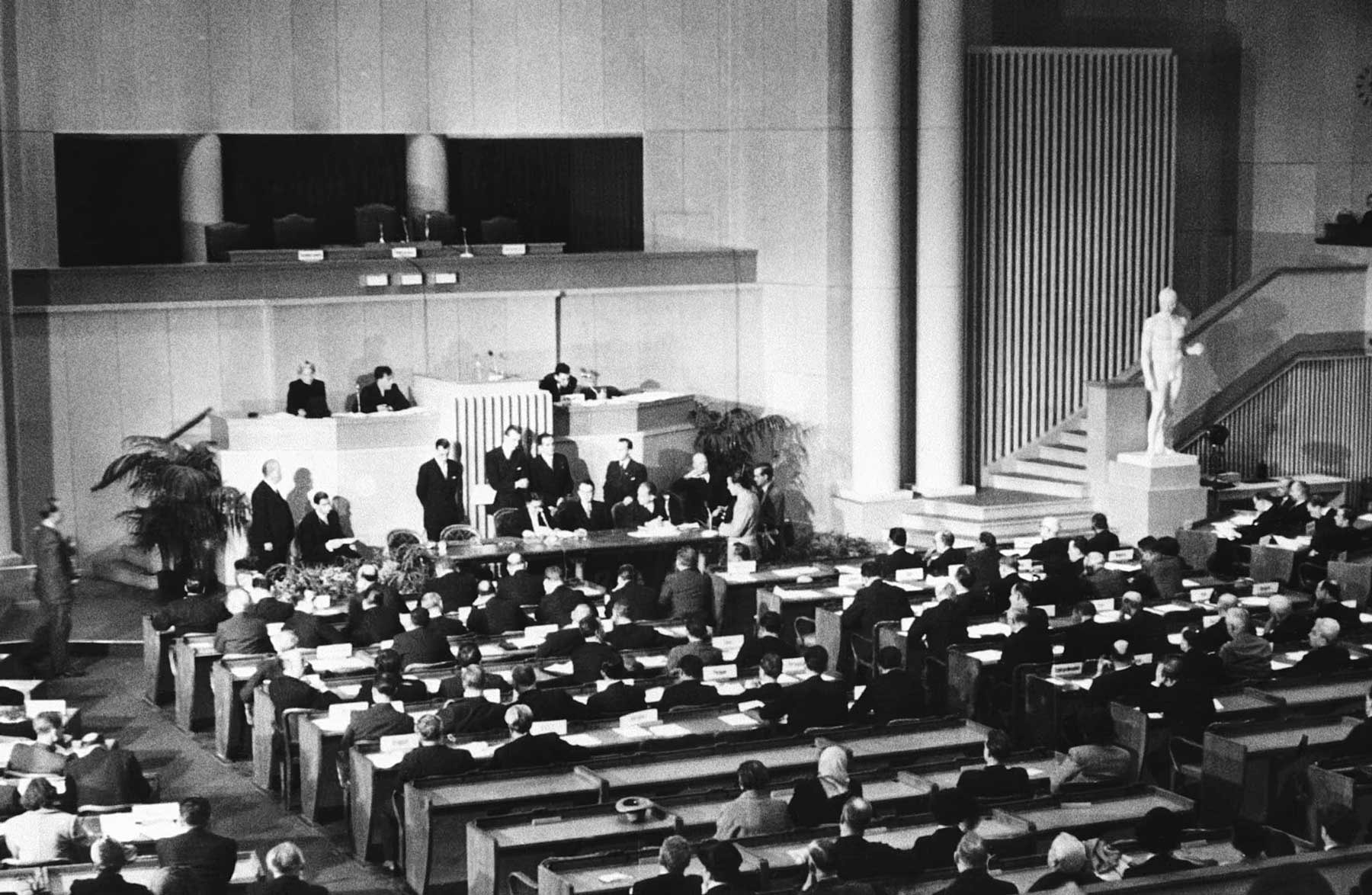 Công ước quốc tế bảo vệ nạn nhân chiến tranh đã thông qua tại Hội nghị ngoại giao được Tổng thư ký Liên hợp quốc triệu tập tại Geneva (Thụy Sĩ), ngày 12-8-1949_Ảnh: TL