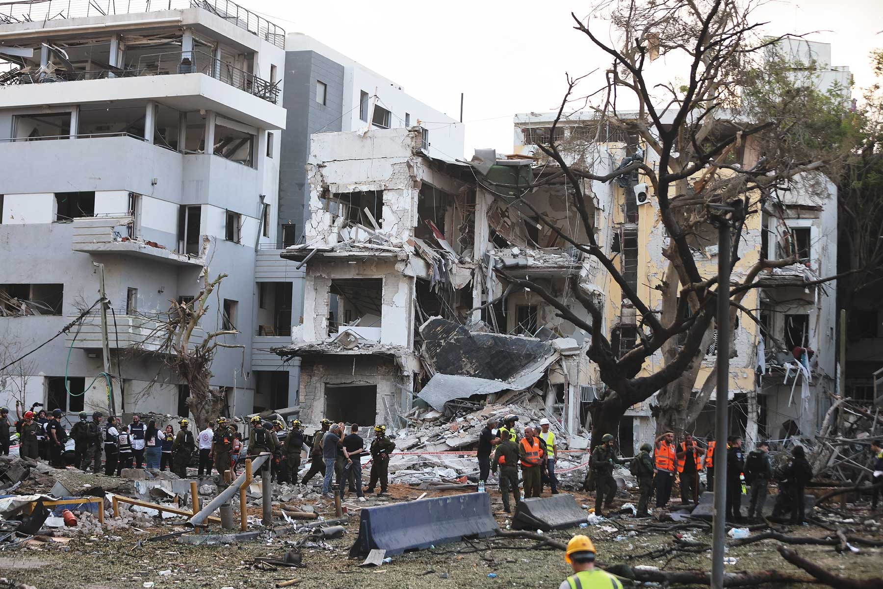 Những tòa nhà tại Tel Aviv, Israel bị hư hại sau cuộc tấn công bằng tên lửa của Iran_Ảnh: THX/TTXVN