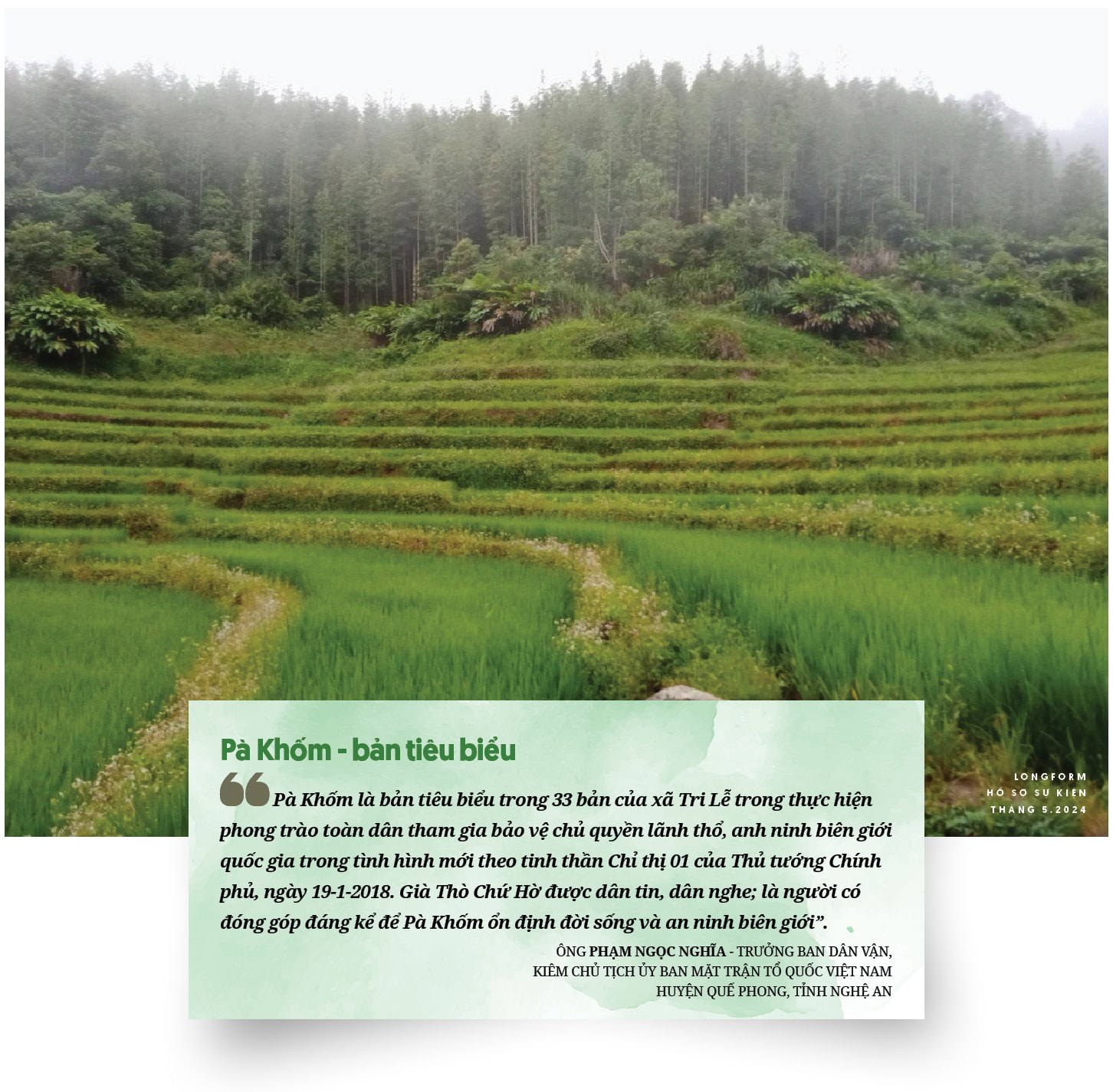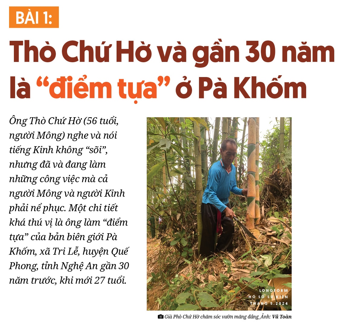 Vừa nghe câu chuyện "điểm tựa" của già Thò Chứ Hờ, trung tá biên phòng Nguyễn Bá Kiệm - cán bộ tăng cường làm Phó Bí thư Đảng uỷ xã Tri Lễ - cho hay: "từ Pà Khốm đi bộ 3 giờ là chạm đường biên giới Việt - Lào.