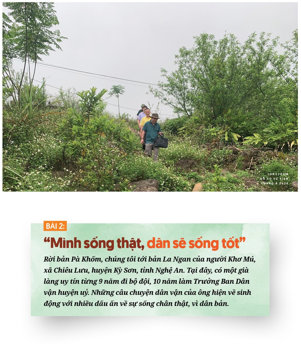 Nhắc đến chức danh "người uy tín", già Hờ cười dể lộ hàm răng trắng không còn nguyên vẹn. Già khoe, con trai của già là Thọ Bá Vàng, 33 tuổi, đi bộ đội giờ về làm thôn đội trưởng. " Hắn vừa đi nhận bằng khen của biên phòng tỉnh và giấy khen của huyện đấy".