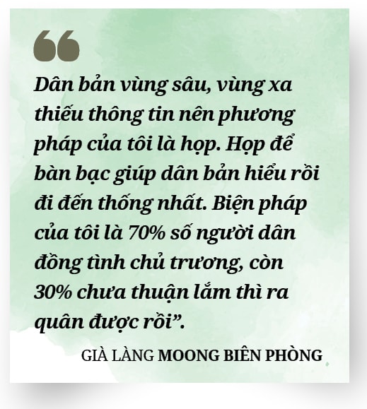 “Dân bản vùng sâu, vùng xa thiếu thông tin nên phương pháp của tôi là họp. Họp để bàn bạc giúp dân bản hiểu rồi đi đến thống nhất. Biện pháp của tôi là 70% số người dân đồng tình chủ trương, còn 30% chưa thuận lắm thì ra quân được rồi”, ông Phòng nhớ lại.