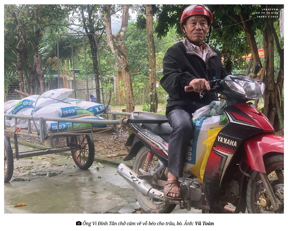 Hôm chúng tôi đến, bản Bình Yên vừa dứt cơn mưa rừng xối xả. Ông Tân đang chở những bì cám từ ngoài trung tâm xã về vỗ béo trâu, bò. Trời hửng nắng vừa đúng dịp ông vào đồi hướng dẫn kỹ thuật trồng keo cho dân bản.