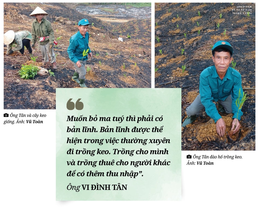 Ông nói: “họp dân truyên truyền đã đành, đi làm keo cũng truyên truyền, đi đám cưới, đi mừng vía cũng tuyên truyền. Hễ cứ có 3 - 5 người là nói chuyện cho bà con thấm. Cá biệt, trong bản có người nghiện lâu năm thì mình đến tận nhà. Trước hết là thăm hỏi rồi giúp họ nhận biết tác hại của ma tuý như giúp con cháu mình. Nói và làm như thế nào để cho người nghiện biết rằng không bỏ ma tuý là có tội với vợ con, gia đình, làng bản. Muốn bỏ ma tuý thì phải có bản lĩnh. Bản lĩnh được thể hiện trong việc thường xuyên đi trồng keo. Trồng cho mình và trồng thuê cho người khác để có thêm thu nhập”.